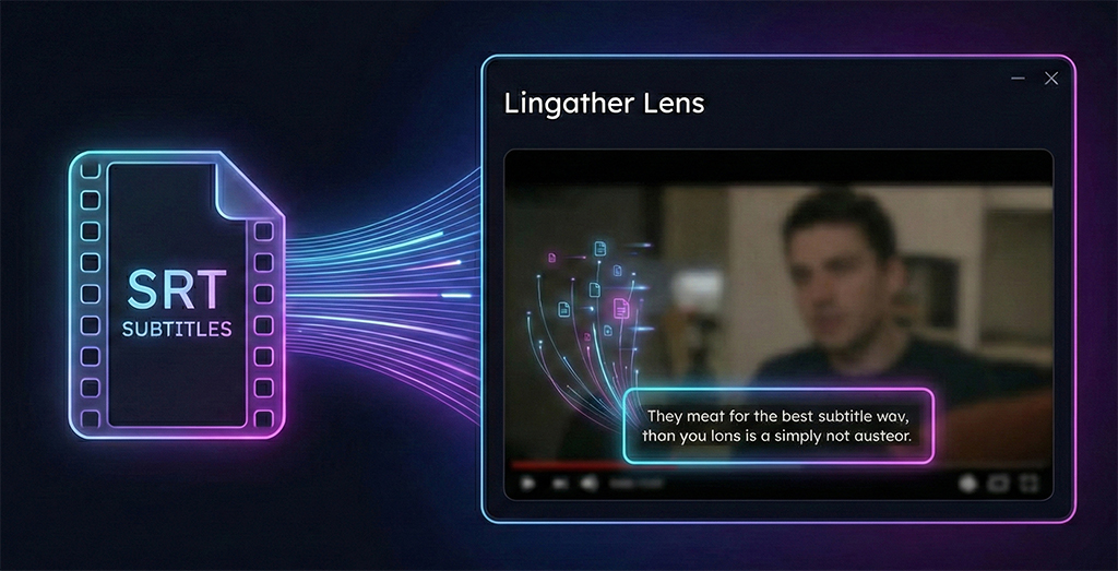 Drag and drop your video file directly into Lingather Lens. We support all major formats including MKV, MP4, and MOV with no file size limits.